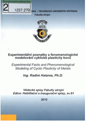 HALAMA, Radim. Experimentální poznatky a fenomenologické modelování cyklické plasticity kovů: teze habilitační práce. 1. vyd. Ostrava: VŠB - Technická univerzita Ostrava, 2010. 30 s. Vědecké spisy Fakulty strojní. Habilitační a inaugurační spisy, sv. 61.