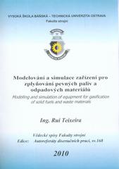 TEIXEIRA, Rui Pedro de Jesus. Modelování a simulace zařízení pro zplyňování pevných paliv a odpadových materiálů: autoreferát disertační práce. 1. vyd. Ostrava: VŠB - Technická univerzita Ostrava, 2010, 29 s. Vědecké spisy Fakulty strojní. Autorefe