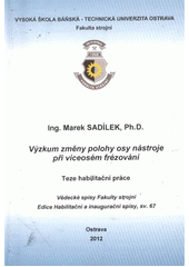 SADÍLEK, Marek. Výzkum změny polohy osy nástroje při víceosém frézování: téze habilitační práce. 1. vyd. Ostrava: VŠB - Technická univerzita Ostrava, Fakulta strojní, 2012, 49 s. Vědecké spisy fakulty strojní. Habilitační a inaugurační spisy, sv. 6