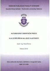 ŠMÍRA, Pavel. Vliv stáří dřeva na jeho vlastnosti: autoreferát disertační práce. 1. vyd. Ostrava: Vysoká škola báňská - Technická univerzita Ostrava, 2012, 35 s. Vědecké publikace Fakulty stavební Vysoké školy báňské - Technické univerzity Ostrava.