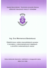 WERNEROVÁ, Eva. Objektivizace výběru kancelářských prostor k pronájmu v administrativních objektech s použitím matematických metod =: Objectivization of office space selection for rent in administrative objects using mathematical methods : autoreferát k disertační práci. 1. vyd. Ostrava: Vysoká škola báňská - Technická univerzita Ostrava, 2014. 44 s. Vědecké publikace Fakulty stavební Vysoké školy báňské - Technické univerzity Ostrava. Doktorské disertační, habilitační a inaugurační spisy.