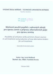 BULÍKOVÁ, Lucia. Možnosti použití popílků z vybraných zdrojů pro úpravu zemin a přípravu alternativních pojiv pro úpravu zeminy =: Possibility of utilisation of fly ash from chosen sources in soil treatment and production of new alternative binders for soil treatment : autoreferát disertační práce. 1. vydání. Ostrava: Vysoká škola báňská - Technická univerzita Ostrava, 2020. 35 stran.