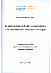MOHYLA, Petr. Od obalené elektrody k aditivním technologiím =: From coated electrode to additive technologies : teze inaugurační přednášky ke jmenovacímu řízení profesorem v oboru Strojírenská technologie. 1. vydání. Ostrava: Vysoká škola báňská - Technická univerzita Ostrava, 2021. 56 stran. Vědecké spisy Fakulty strojní. Habilitační a inaugurační spisy, sv. 102.