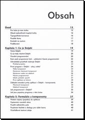 Kniha nabízí pomoc všem, kdo hledají řešení jednoduchých, složitějších i náročných programátorských oříšků. Pokrývá nejzákladnější témata (vytvoření první aplikace, práce s formuláři, komponentami, klávesnicí, myší apod.) i moderní progresivní oblasti, například zprávy a registry systému Windows, dynamicky linkované knihovny, vícevláknové zpracování, databáze, technologie OLE, sockety nebo programování pro Internet. Nechybí ani ukázky programování vlastního internetového prohlížeče, zákaz klávesové zkratky Alt+F4, kreslení na plochu Windows apod. Doprovodné CD obsahuje zdrojové soubory všech řešení z knihy a Delphi 7 Studio Architect Trial.
