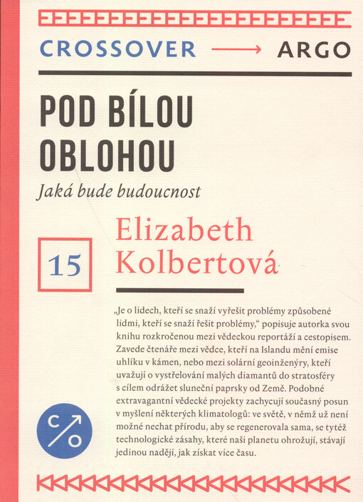 KOLBERT, Elizabeth. Pod bílou oblohou: jaká bude budoucnost. Překlad Sylva FICOVÁ. Vydání první. Praha: Argo, 2023. 214 stran. Crossover, 15.