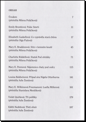 Objevná antologie strašidelných povídek, psaných ženami, seznamuje čtenáře s povětšinou opomíjenými anglosaskými autorkami, jež však napsaly příběhy, které patří k tomu nejlepšímu v tomto žánru. Ženy jako „svědkyně“ temných hnutí mysli, drobných každodenních „zločinů“, ženy jako chladnokrevné pozorovatelky triumfů i zkázy mužů, jejich poklesků a slabostí, jsou v mnoha ohledech skvělými vypravěčkami, svou citovostí doslova předurčenými pro šerosvit na pomezí nadpřirozena. Druhým důvodem, proč povídky viktoriánských autorek dodnes fascinují čtenáře, je potlačovaná síla vášně, erotické touhy, ale i rozhodnosti, s níž se ženy staví na roveň mužům a soupeří s nimi, tedy stěží napodobitelné ingredience, jež jsou přítomny v každém z těchto příběhů.
