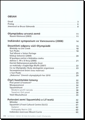 Co lidé dělali proti a jak jim to nebylo nic platné, když mocní rozhodli jinak. Nepomohly mnohaleté demonstrace v provincii, ani projevy solidarity ze zahraničí, stížnosti u Mezinárodního olympijského výboru, ani v OSN. Svět ovšem nechtěl nic vědět o humanitárním bezpráví v zázemí Olympiády. Kanaďané sice slibovali nejzelenější Hry v historii, ale pak nedokázali dodržet ani vlastní zákony o ochraně přírody a tak začaly destrukcí životního prostředí. Překvapí příběh muže, jenž měl na starosti jejich bezpečnost, ačkoli jeho kariéra vyrostla z potlačování tzv. "indiánských rebelií". Olympiáda měla na svém kontě nejen smrt gruzínského sáňkaře, ale i několik mrtvých indiánů, o kterých se u nás nepsalo. Přitom smrt řezbáře a člena sněmu Lilwatů málem zhatila zahajovací ceremoniál. Tato kniha chce naše povědomí o tom všem vylepšit.