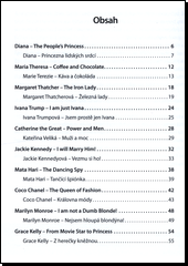 Příběhy dvaceti výjimečných žen v češtině a v angličtině! Příběhy dvaceti výjimečných žen najdete v této knize v české a v anglické verzi. Kniha je určena pro mírně pokročilé studenty angličtiny, kteří se rádi učí nebo si procvičují cizí jazyk čtením. Český překlad na protější straně umožní čtenáři zkontrolovat, zda cizojazyčnému textu správně porozuměl. Každé vyprávění o slavné ženě doplňují otázky na porozumění a také zajímavost, která se k hrdince vztahuje. Audionahrávka, na níž příběhy vypráví rodilý mluvčí, je k dispozici zdarma na stránkách nakladatelství.