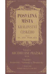 PODLAHA, Antonín. Posvátná místa Království českého: dějiny a popsání chrámů, kaplí, posvátných soch, klášterů i jiných pomníků katolické víry a nábožnosti v Království českém. 1. vydání. Vlašim: město Vlašim, 2017, 338 s. Knih "Dědictví Svatojansk