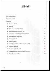 „Knížka o knížkách“ je sestavená zkušenou lektorkou kurzů ruční knižní vazby. Autorka seznamuje s tradičním způsobem vázání knih, jako je zavěšení bloku do pevných desek, a to nejen u nové vazby, ale i u převazby starší publikace. Nechybí ani příklady jednodušších knihařských postupů spolu s nezvyklými japonskými vazbami, např. Asa-no-ha toji nebo Youtsume toji.