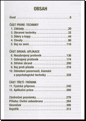 Kniha obsahuje přes 150 ilustrací a popisuje, jak se vypořádat s jedním i několika protivníky a s útočníky ozbrojenými tupými, bodnými, sečnými i střelnými zbraněmi.Obsahuje tipy pro úhyby, kopy, údery, chvaty, škrcení, vychýlení a strhy. Jednotlivé kapitoly knihy se zabývají obrannými technikami, bojem s neozbrojeným i ozbrojeným protivníkem, bojem proti střelným zbraním nebo přesile, odvedením pozornosti útočníka a fyzickou přípravou.