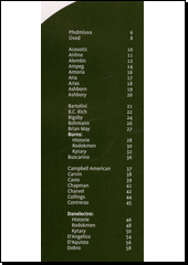 Obrazový katalog kytar s důrazem na ty elektrické z 20. století. Mapuje více než 200 nejvýznamnějších modelů včetně slavných značek Fender, Gibson, Martin, Gretsch či Rickenbacker; druhé vydání.Každý model zabírá jednu stránku s celobarevnou fotografií, historií vzniku, podrobnou specifikací a informací, který z umělců na ni hrál nejlépe, a na kterém albu najdete její charakteristický zvuk. V případě výše zmíněných pěti slavných značek autor připojil i delší vícestránkové historické okénko a celobarevný plakát, který ilustruje chronologický vývoj modelů dané značky.