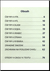Vyprávění o čápu Pipovi a jeho nebezpečném dobrodružství. Text respektuje zásady genetické metody výuky čtení, která umožní přečíst text a dozvědět se něco o ptácích i začínajícím čtenářům.