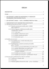 Predkladaná publikácia zahŕňa úvodnú štúdiu, preklad a faksimile originálneho textu dobového diela uhorského „generálneho prokurátora" Jána Kitoniča – Directio methodica processus iudiciarii iuris consuetudinarii, inclyti Regni Hungariae (Metodické pokyny k súdnemu procesu podľa obyčajového práva slávneho Uhorského kráľovstva) z roku 1619. Dielo predstavuje prehľad súdobého civilného a trestného procesného práva, vystihujúci úpravu platnú primárne v 17. a 18. storočí. Toto dielo, pôvodne mienené „iba" ako praktická príručka, sa vďaka povesti, ktorú si svojou kvalitou získalo, a následne vďaka zaradeniu do oficiálnej zbierky platného práva v Uhorsku (Corpus Iuris Hungarici), stalo akoby prvou „kodifikáciou" uhorského procesného práva. Príručka bola využívaná v praxi najmä v konaniach pred Kráľovskou kúriou (resp. jej nižšou inštančnou zložkou, Kráľovskou tabuľou), ale aj pred stoličnými a cirkevnými súdmi. O jedno storočie po jej napísaní sa dokonca využila v procese s Jurajom Jánošíkom. Okrem verného obrazu dobovej praxe poskytuje aj dnešnému čitateľovi stále blízke pohľady na konkrétne problémy procesualistickej teórie a praxe vrátane úzko súvisiacej problematiky deontológie právnických profesií advokátov a sudcov. Najmä v týchto otázkach dielo ani po 400 rokoch nestratilo nič na svojej relevancii.
