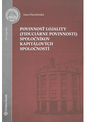 DURAČINSKÁ, Jana. Povinnosť lojality (fiduciárne povinnosti) spoločníkov kapitálových spoločností. Prvé vydanie. Bratislava: Wolters Kluwer :, Univerzita Komenského v Bratislave, Právnická fakulta, 2020. 158 stran. Monografie / Univerzita Komenského v Bratislave, Právnická fakulta.