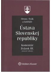 Tretí zväzok Komentára k Ústave je zavŕšením rozsiahleho diela, ktoré spracoval kolektív autorov pod vedením prof. Orosza a prof. Sváka v uplynulých troch rokoch, v období, ktoré sa symbolicky prekrýva s 30. výročím prijatia Ústavy a vzniku samostatného štátu. Prvý zväzok diela sa komplexne venoval komentáru základných ústavných princípov a ľudských práv, druhý priniesol podrobný rozbor ústavných orgánov. Záverečný tretí zväzok prináša vôbec prvý komentár osobitných ústavných zákonov, ktoré spolu s Ústavou tvoria polylegálny slovenský ústavný systém. Autori, vedci pôsobiaci zároveň v právnej praxi, sa pri komentári zamerali predovšetkým na praktické aplikačné problémy v snahe splniť hlavnú úlohu, ktorá sa od komentárového diela očakáva – dať podrobné a pevnými argumentmi podporené odpovede na otázky, ktoré priniesla či prinesie aplikačná prax. Po veľmi pozitívnom ohlase, s ktorým sa stretli prvé dva zväzky diela, je dôvod veriť, že aj tretí zväzok Komentára bude pozitívne prijatý, o to viac, že prináša matériu, ktorá týmto spôsobom zatiaľ nikdy spracovaná nebola.