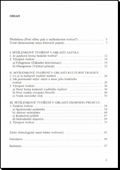 Kniha se snaží zachytit univerzální principy myšlenkového tvoření v oblasti jazyka, kulturní tradice, osobního projevu.
