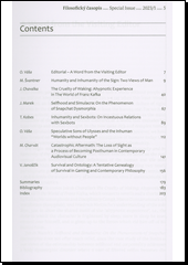 Speciální číslo obsahuje úvahy o světech bez lidí, tzv. transhumanismu a různých verzí posthumanismu - o technologických vymoženostech a robotech, které pro svou umělost postrádají lidskost a kladou nám v této souvislosti i mnohé etické otázky.