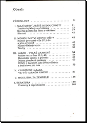 Výklad křesťanského pojetí smrti a vzkříšení, založený na rozboru příběhu biblického Lazara, je doplněný o zobrazení události ve výtvarném umění.