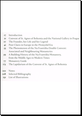 Areál Anežského kláštera, od 60. let 20. století využívaný Národní galerií v Praze, si dodnes uchoval původní dispozici dvojkláštera klarisek a menších bratří. Byl založen ve 30. letech 13. století přemyslovskou princeznou Anežkou Českou, která zde působila téměř půlstoletí. Ve svatyních této mimořádné gotické stavby se konaly královské korunovace i pohřby a dle legendistů se zde odehrálo i množství zázraků, o čemž přehledně pojednává bohatě ilustrovaný průvodce, který vychází u příležitosti otevření zrekonstruovaných tamějších zahrad s pozůstatky kláštera menších bratří a otevření nového prohlídkového okruhu s historicky první expozicí zdejšího lapidária. Obsahuje kapitoly, věnované osobnosti Anežky České, stavebním dějinám kláštera a jeho moderní historii, fenoménu kláštera klarisek a dvojkláštera ve středověku, na něž navazuje průvodce areálem a katalog expozice lapidária. -