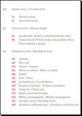 Knihu uvádějí čtivě napsané studie Jana Rychlíka a Dušana Kováče, reflektující soužití Čechů a Slováků z pohledu obou národů, po kterých následuje komentovaný katalog předmětů z oblastí politiky, umění, architektury, volného času, armády a mnoha dalších.