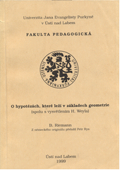 RIEMANN, Bernhard a Hermann WEYL. O hypotézách, které leží v základech geometrie: (spolu s vysvětlením H. Weyla). Přeložil Petr RYS. Ústí nad Labem: Univerzita Jana Evangelisty Purkyně, Pedagogická fakulta, 1999, 35 s. ISBN 80-7044-253-0.