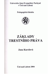KUREŠOVÁ, Jana. Základy trestního práva. Vyd. 1. Ústí nad Labem: Univerzita J.E. Purkyně v Ústí nad Labem, Pedagogická fakulta, 2004. 52 s.