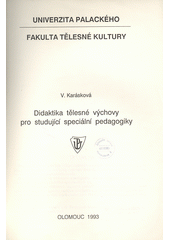 KARÁSKOVÁ, Vlasta. Didaktika tělesné výchovy pro studující speciální pedagogiky. 2., přeprac. vyd. Olomouc: Univerzita Palackého, 1993, 66 s. ISBN 80-7067-244-7.