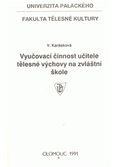 KARÁSKOVÁ, Vlasta. Vyučovací činnost učitele tělesné výchovy na zvláštní škole: Určeno pro stud. učitelství MVZP [mládež vyžadující zvláštní péči] a vychovatelství OVZP [osoby vyžadující zvláštní péči]. 1. vyd. Olomouc: Univerzita Palackého, 1990. 54 s.