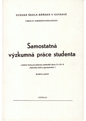 Samostatná výzkumná práce studenta: učební texty pro přípravy seminářů oboru "Výstavba dolů a geotechnika" : určeno pro posl. 3. a 4. roč. hornicko-geolog. ak. 1. vyd. Ostrava: Vysoká škola báňská, 1989. 152 s.