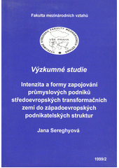 SEREGHYOVÁ, Jana. Intenzita a formy zapojování průmyslových podniků středoevropských transformačních zemí do západoevropských politických struktur. Vyd. 1. V Praze: Vysoká škola ekonomická, Fakulta mezinárodních vztahů, 1999. 86 s. Výzkumné studie, 1999/2.