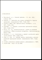 BARTONÍČEK, Ladislav. Konstrukce pístových spalovacích motorů. 2., přeprac.vyd. Liberec: Vysoká škola strojní a textilní v Liberci, 1992, 195 s. ISBN 80-7083-094-8.