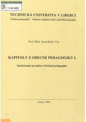 RÝDL, Karel. Kapitoly z obecné pedagogiky I: společenské proměny ovlivňují pedagogiku. Vyd. 1. Liberec: Technická univerzita, 2004. 67 s.