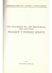 KIOVSKÁ, Mária, Jozef SOTOLÁŘ a Mikuláš MIKOLAJ. Procesy v štátnej správe. 1. vyd. Košice: Univerzita P.J. Šafárika, Právnická fak., 1991, 140 s. Vysokoškolské učebné texty. ISBN 80-7097-107-X.