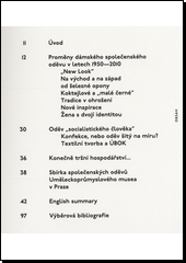 Publikace představuje výběr společenských oděvů české i zahraniční provenience od roku 1950 do současnosti. Obrazovou část uvádí text věnovaný obecnému vývoji společenského oděvu po 2. světové válce ve světě a také specifické situaci v Československu s důrazem na autorskou modelovou tvorbu českých návrhářů v posledních dvaceti letech.