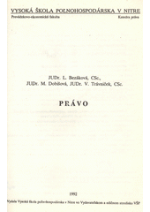 BEZÁKOVÁ, Lýdie, Vladimír TRÁVNIČEK a Mária DOBIŠOVÁ. Právo. 1. vyd. Nitra: Vys. škola poľnohospod., 1992, 185 s. ISBN 80-7137-044-4.