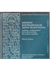 DOMIN, Marek. Inštitút kontrasignácie aktov hlavy štátu osobitne v podmienkach ústavného systému Slovenskej republiky. Bratislava: Univerzita Komenského, Právnická fakulta, 2015. 1 CD-ROM. Studia Iuridica Bratislavensia, Nr. 48.