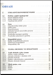 V jednotlivých kapitolách jsou objasněny základní ekonomické pojmy, úloha obchodu ve společnosti, obchodní operace v prodejně i formy prodeje a služeb.