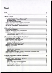 V úvodní části jsou příklady situací vhodných pro použití maker a zároveň je objasněno vytváření vlastních maker pomocí záznamníku. Největší pozornost je věnována příkladům na procvičení potřebných činností, především práce s objektovým modelem (Range, Workbook, Worksheet, Application). Publikace dále seznamuje s vývojovým prostředím Excelu a s jazykem Visual Basic for Application. Závěr je věnován příkladům nejčastějších možných chyb a jejich rychlému řešení. Učebnice je přehledně řešená a orientaci v textu usnadňují různé typografické prvky.