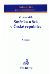 KOVAŘÍK, Zdeněk. Směnka a šek v České republice. 3., dopl. a přeprac. vyd. Praha: C.H. Beck, 2000. xvii, 609 s. Beckova edice právo a hospodářství.
