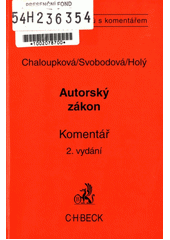 CHALOUPKOVÁ, Helena. Zákon o právu autorském, o právech souvisejících s právem autorským a o změně některých zákonů (autorský zákon) a předpisy související: komentář. 2. vyd. Praha: C.H. Beck, 2004. xiv, 515 s. Beckovy texty zákonů s komentářem.