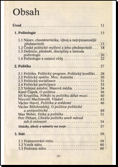 Výkladové texty k jednotlivým tématům jsou doplněny historickým přehledem, seznamem pojmů k zapamatování a charakteristikou jednotlivých probíraných představitelů politické vědy. Cenný je slovník českých ekvivalentů použitých cizích slov, náměty k diskusi a témata na eseje.
