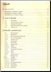 Populární učební pomůcka pro studenty SŠ a VŠ uvádějící vývoj filosofie z hlediska tematického a historického. Vnější podoba textů je podřízena hledisku tematickému (filosofie bytí, poznání a člověka). Pro celkový přehled o pojednávaných problémech a pro snazší pochopení jsou jednotlivá témata zpracována historicky. Práce může být i vodítkem k vlastnímu filosofickému uvažování čtenářů, protože obsahuje i „problémové“ odstavce vyjadřující se k předchozím názorům a dosavadním řešením. Publikace uvádí některé ukázky filosofických textů (v příloze Malá čítanka filosofických textů) týkající se přímo probíraného problému a názorně přibližuje styl uvažování daného filosofa.