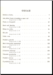 Dvousvazková reedice původního vydání z roku 1939 poskytuje milovníkům Prahy neobvyklé pohledy na město a jeho historii. Ukazuje Prahu, jak ji Pražané neznají, co jim každodením stykem zevšednělo, co je však při "novém osvětlení staré věci přímo skoro uhodí přes oči", jak je obdivuhodná a jak úzce je spojena s osudem celého národa. První svazek popisuje historii hradeb, znaku města, nádraží, kanalizace, domovních znamení, osvětlení, tramvajové dopravy, paroplavby, městského osvětlení a ostrovů, pojednává o požárech a velkých povodních .