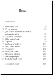 Autorka se odvolává na nejnovější fyziologické a psychologické výzkumy i na historii bádání nad lidskou tváří. Tvrdí, že podle mimiky a fyziognomických rysů lze odhalit skutečnou osobnost i povahu člověka. Sama svou teorii předvádí na rozboru šesti slavných osobností.