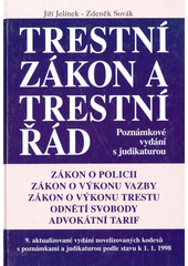 Trestní zákon a trestní řád: úplné znění zákonů o policii, o výkonu vazby, o výkonu trestu odnětí svobody; úplné znění vyhlášky Ministerstva spravedlnosti o odměnách advokátů a náhradách advokátů za poskytování právních služeb - Advokátní tarif : 9. aktualizované vydání novelizovaných kodexů s poznámkami a judikaturou podle stavu k 1.1.1998. 9. aktualiz. vyd. Praha: Linde, 1997. 783 s.