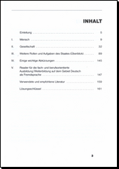 Kniha se obrací na čtenáře zvědavého, zvídavého a přístupného všemu novému, čtenáři, který rád čte německé texty a chce jim správně porozumět. Z hlediska metodického se zde proto zohledňuje strana nejenom gramatická sama o sobě ale zejména pohled zaměřený na porozumění textu. Tato učebnice si vytyčuje za cíl naučit českého čtenáře základům orientace v německy psaných textech z oblasti ekonomiky, práva, sociologie a policejní problematiky. Publikace je vhodným doplňkem pro studium němčiny na vysokých a středních odborných školách pro ekonomy a manažery ale i pro širší okruh zájemců.