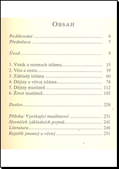Shrnutí základních informací o původu a vývoji vlivného náboženství doplňují dějiny muslimských národů. Charakteristika islámské věrouky, rituálů a propojení Koránu s náboženským zákonodárstvím. Historické změny, kulturní, společenské a hospodářské aspekty života muslimů. Závěr přináší stručný přehled nejvýznamnějších historických osobností muslimského světa.