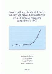 KOUŘILOVÁ, Jindra. Problematika protichůdných dotací na chov vybraných hospodářských zvířat a ochranu predátora (případ ovcí a vlků). Vydání: první. Brno: Akademické nakladatelství CERM, s.r.o., 2018. 158 stran.