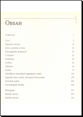 Staří Egypťané byli sběhlí ve využívání bylin a nejrůznějšího koření k léčebným či kosmetickým účelům, ale i kupříkladu v oblasti praktického vaření. Opírajíc se o staré egyptské texty a díla klasických autorů, shromáždila autorka herbář 94 druhů koření z rostlin a stromů, které používali faraónové tehdejší doby. Publikace obsahuje i autentické receptury a popisy jednotlivých léčebných procedur, které lze bez obav aplikovat i dnes.